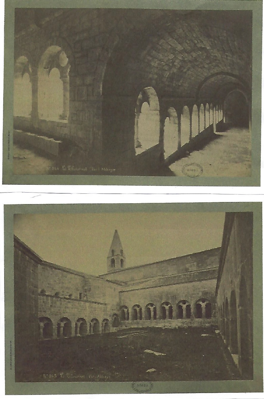 Interior y exterior del claustro de la abadía Le Thoronet (1163). Fotografía de Séraphin Médéric Mieusement (1840-1905), antes de su rehabilitación (BnF).